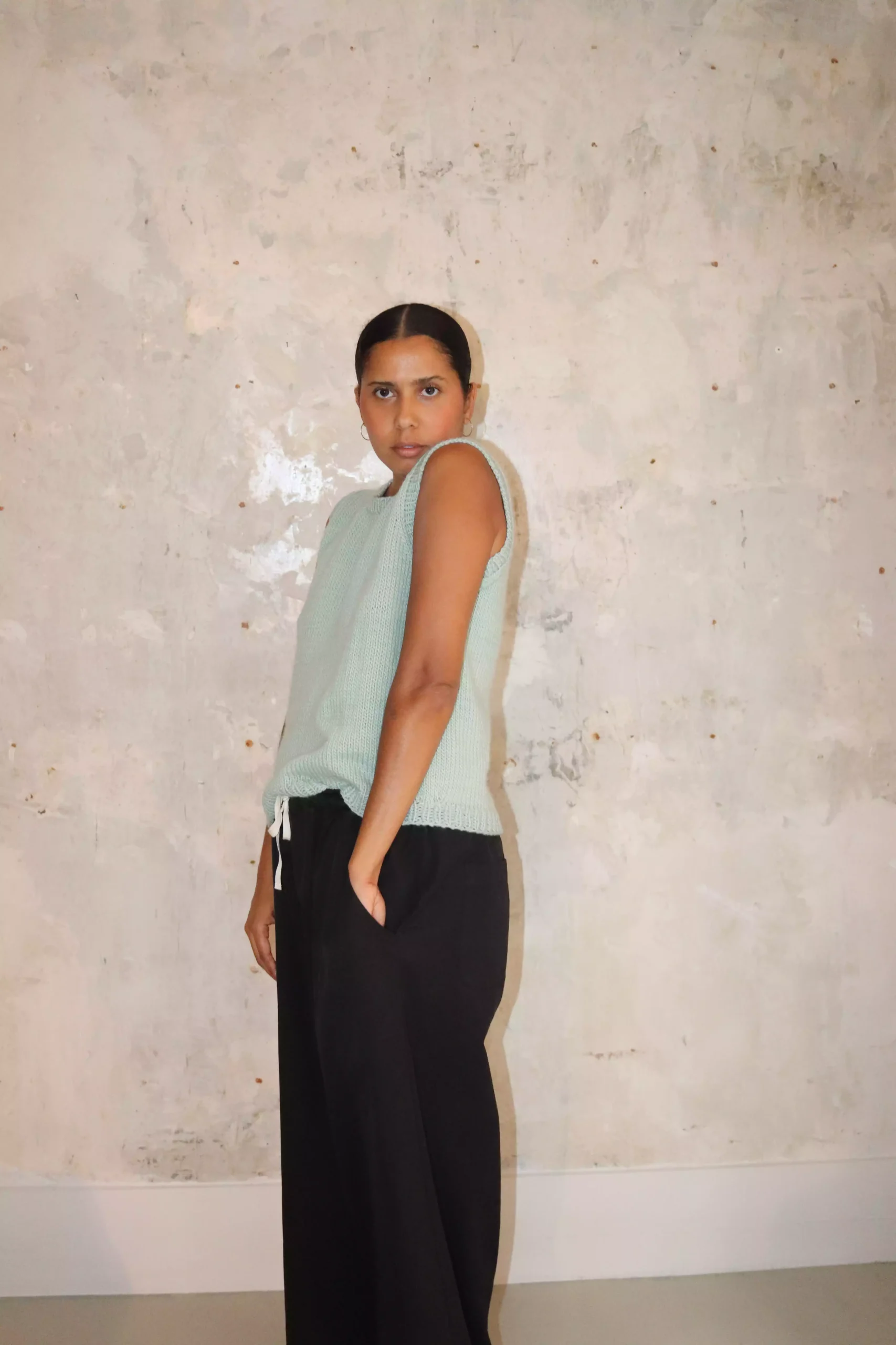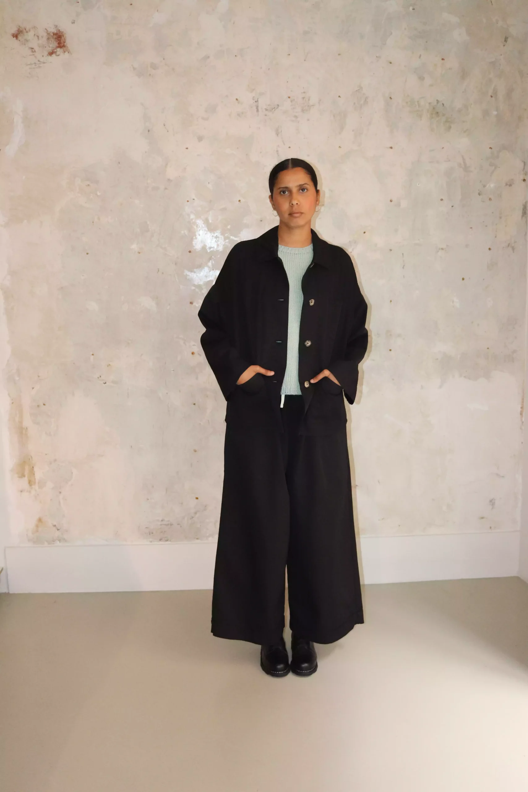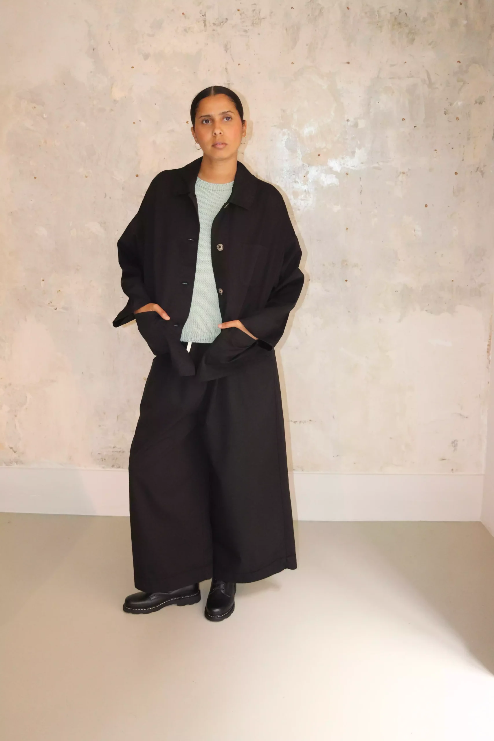 The collections are created using natural materials with a focus on reducing environmental impact. All items are fully handmade—whether hand-knitted, hand-crocheted, or artisanally tailored.
