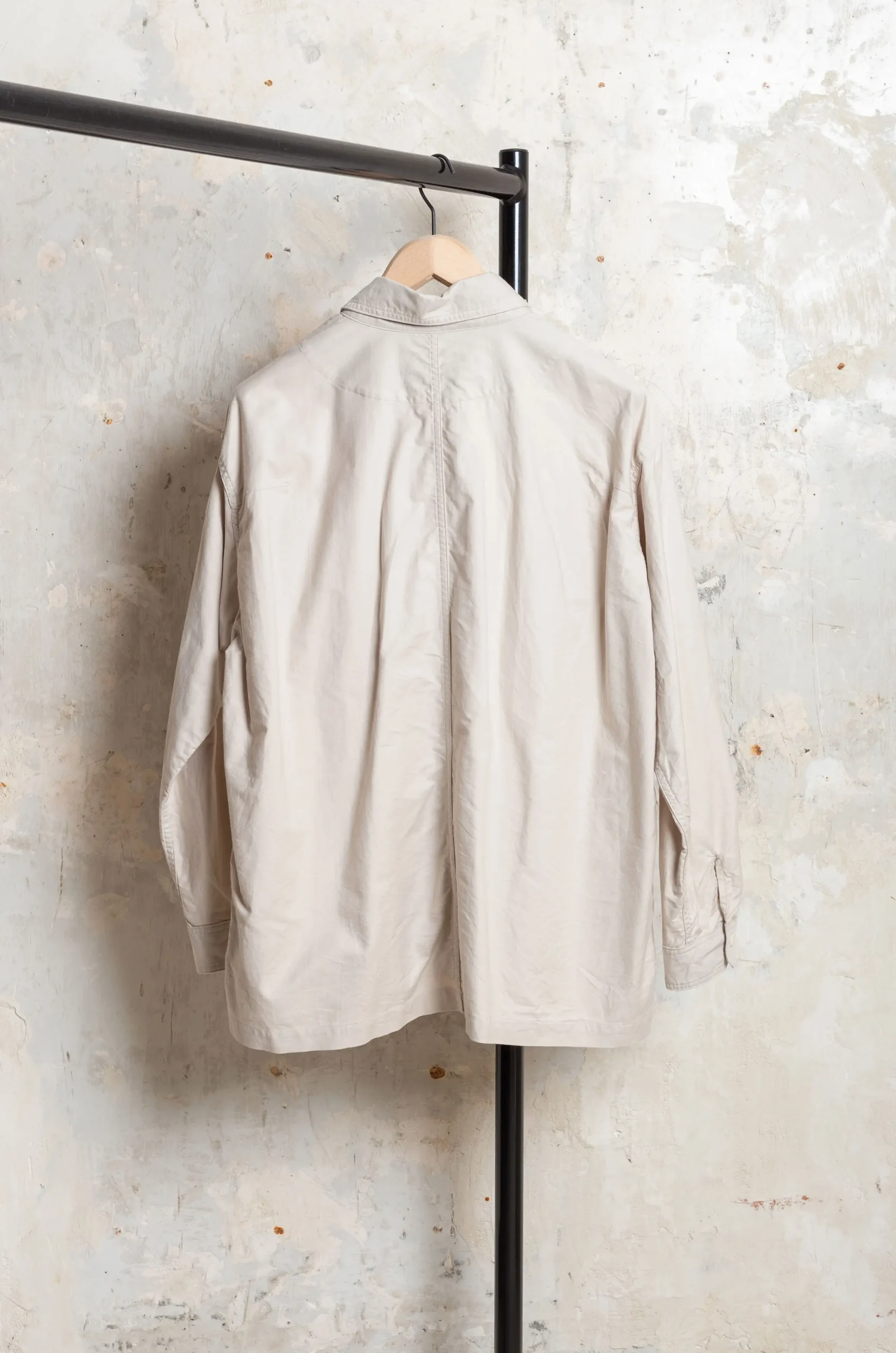 This military-inspired shirt jacket by Ts(s) comes in a soft ecru tone. Structured yet lightweight, it’s ideal for refined, everyday layering.