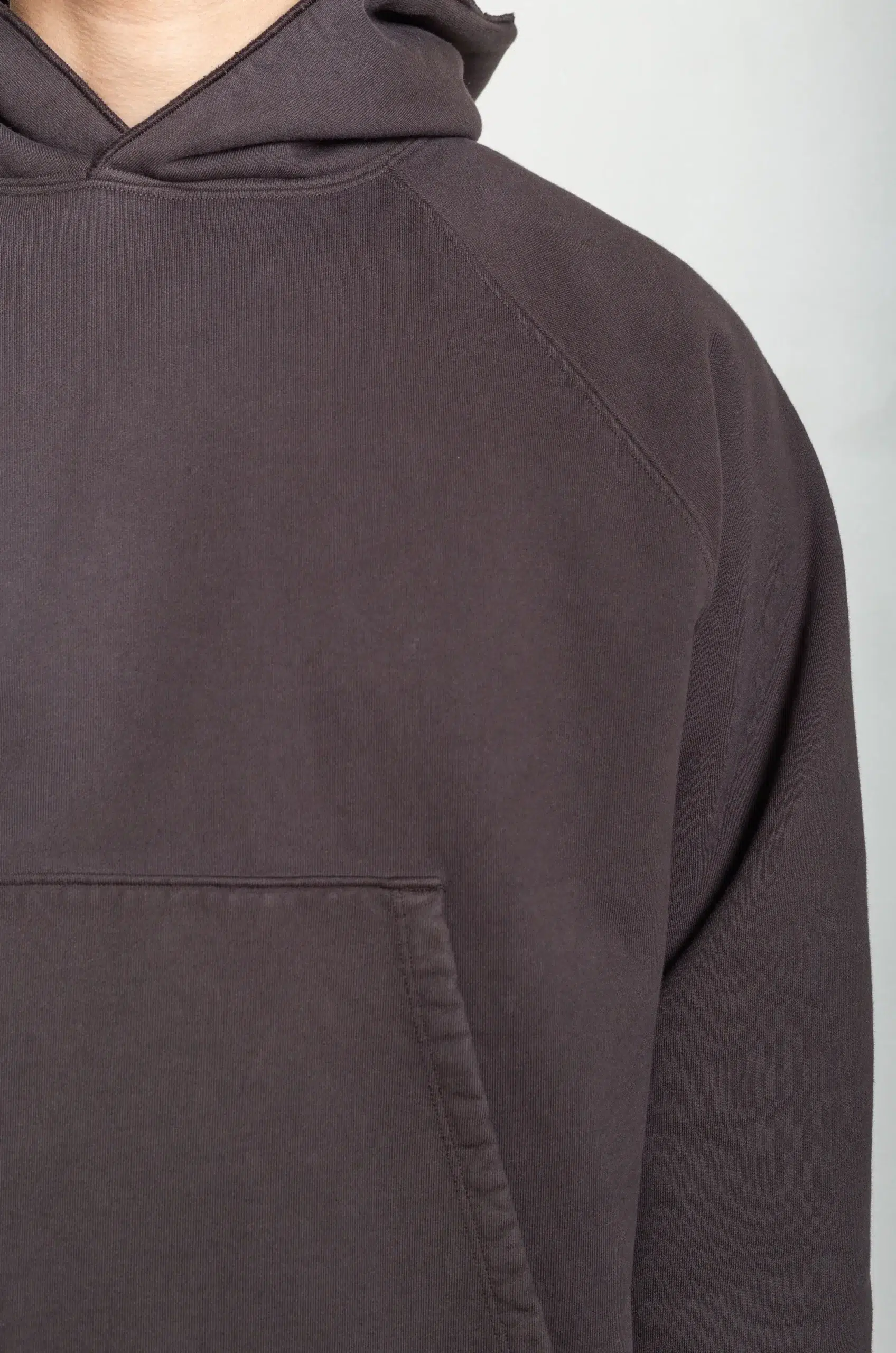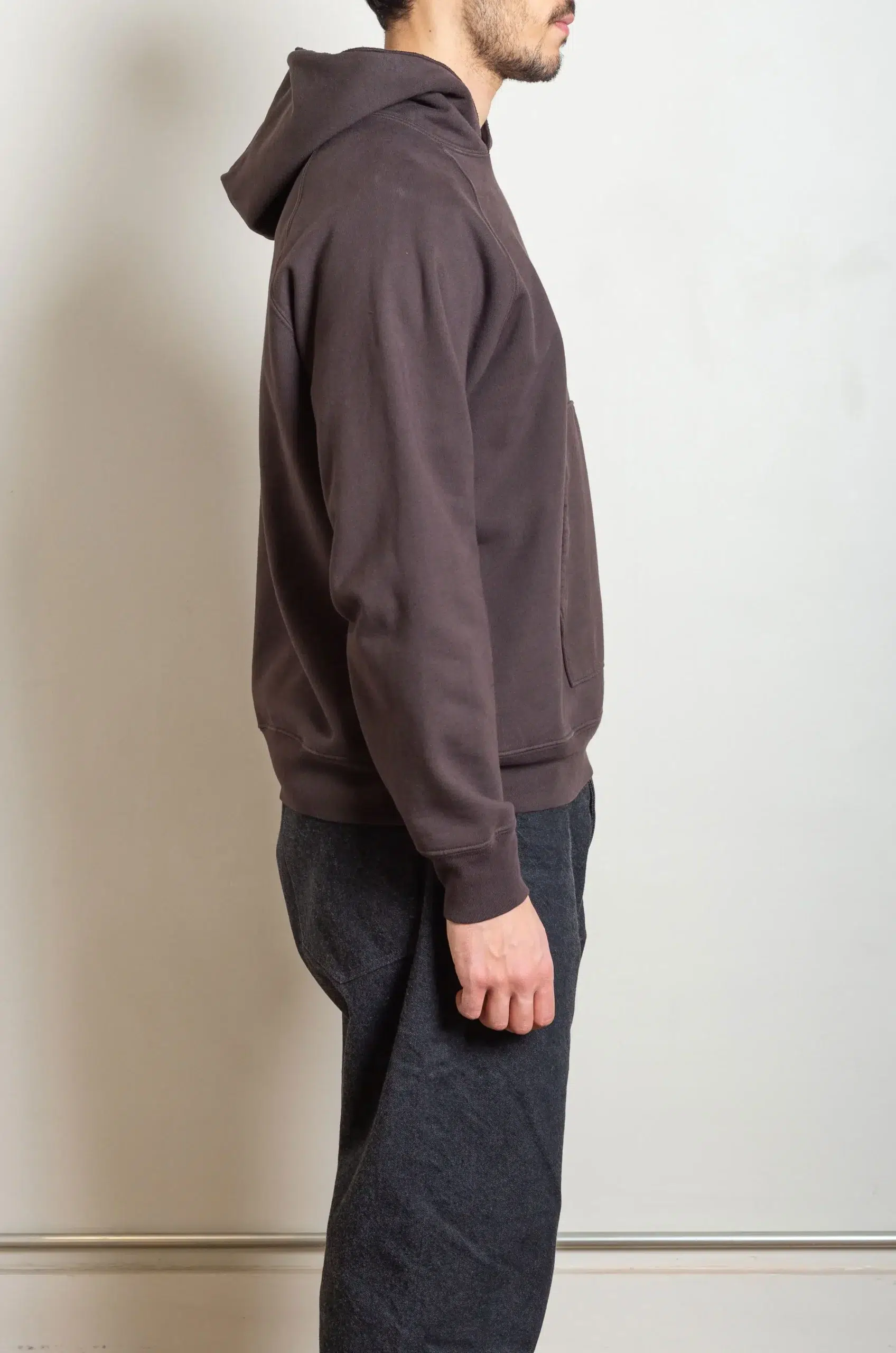 The hoodie’s relaxed yet deliberate shape creates a boxy drape that feels both stable and effortless. In addition, the double-layered hood and reinforced neckline contribute to long-term durability, ensuring the garment maintains its structure through repeated wear. You can wear it as a standalone layer or comfortably integrate it beneath outerwear without sacrificing ease or form.