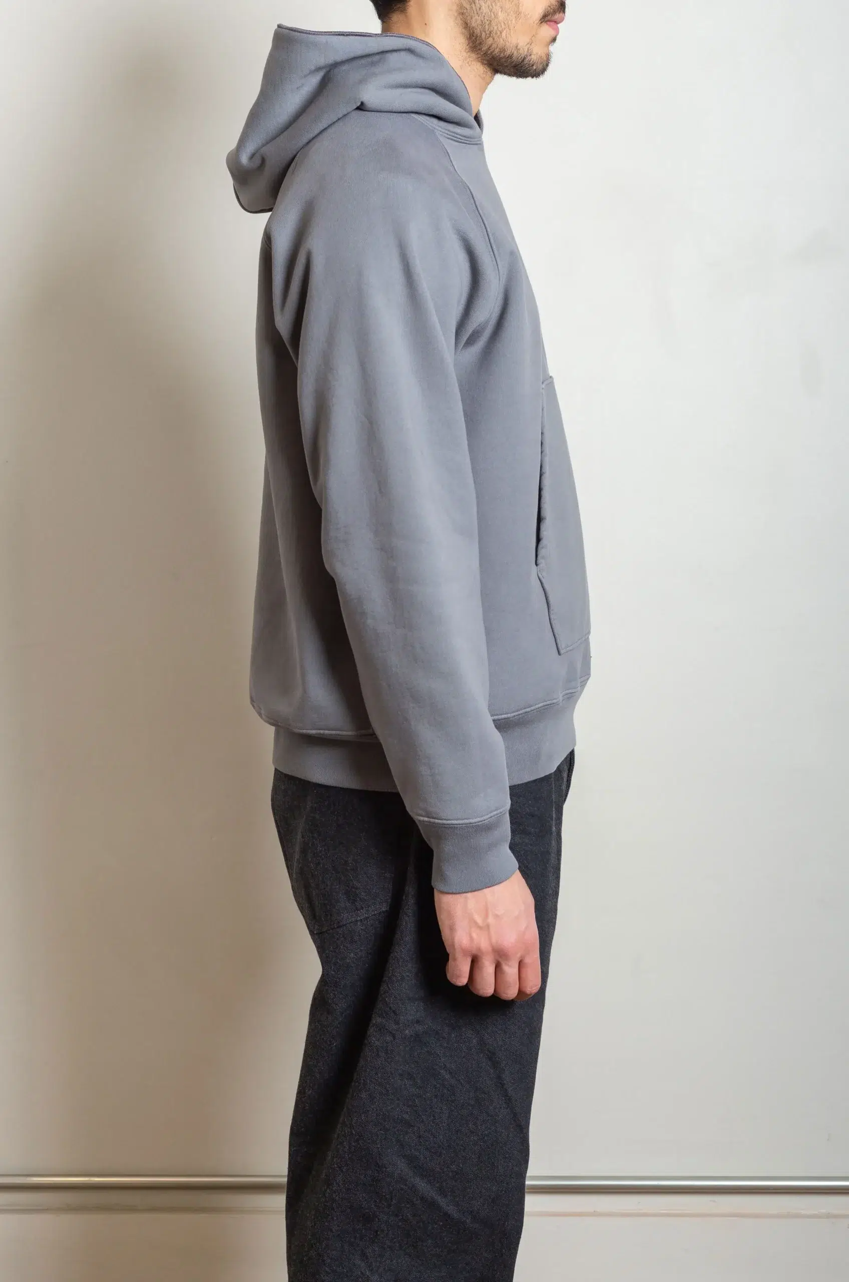 The hoodie’s shape feels intentionally relaxed yet controlled, offering a boxy drape that supports effortless wear throughout the day. In addition, the double-layered hood and reinforced neckline enhance both durability and comfort, ensuring the garment maintains its form through repeated use. You can wear it as a standalone statement piece or layer it under outerwear without compromising movement or structure.