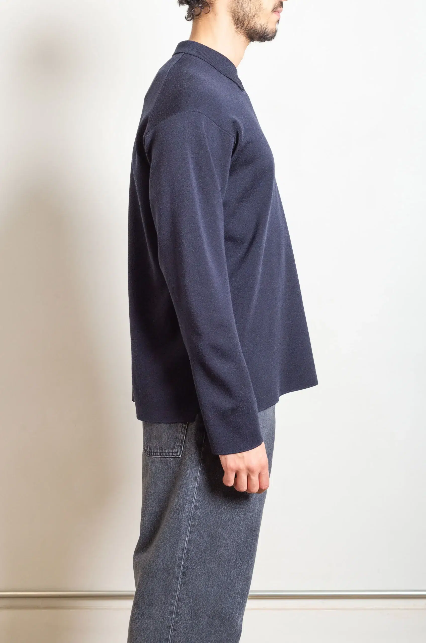 Batoner – 32G WOOL SMOOTH POLO HALF ZIP – NAVY