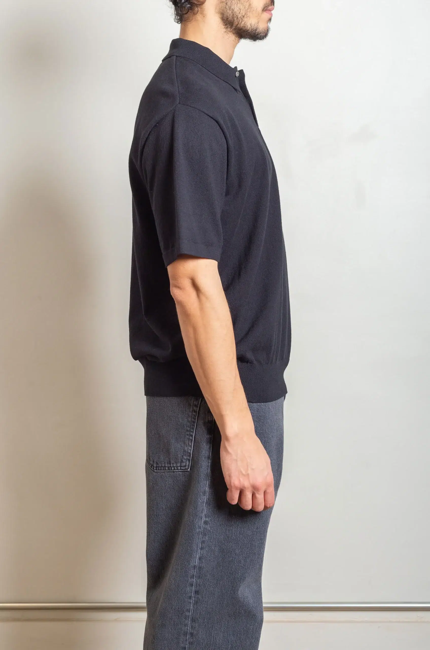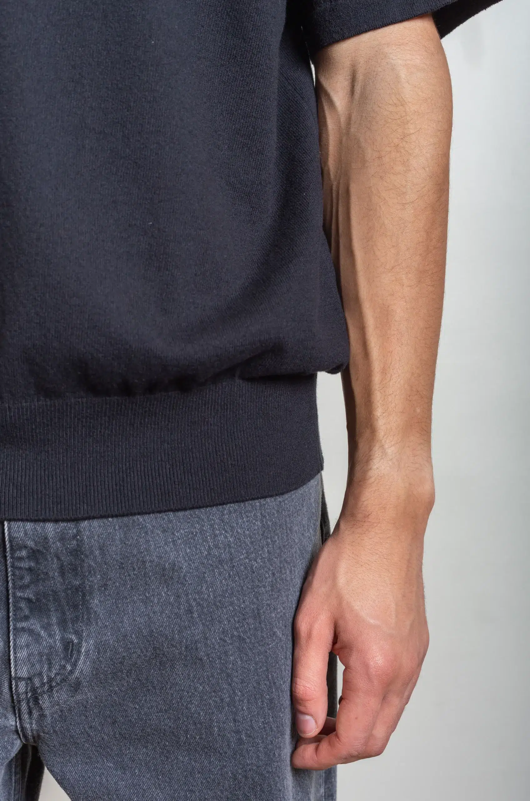 In addition, the fabric feels soft against the skin while remaining resilient and easy to wear throughout the day. Because of this, the garment works well on its own or as a refined layering piece. Furthermore, the precise construction allows the knit to hold its shape while moving naturally with the body. Consequently, it delivers both comfort and visual depth without excess.