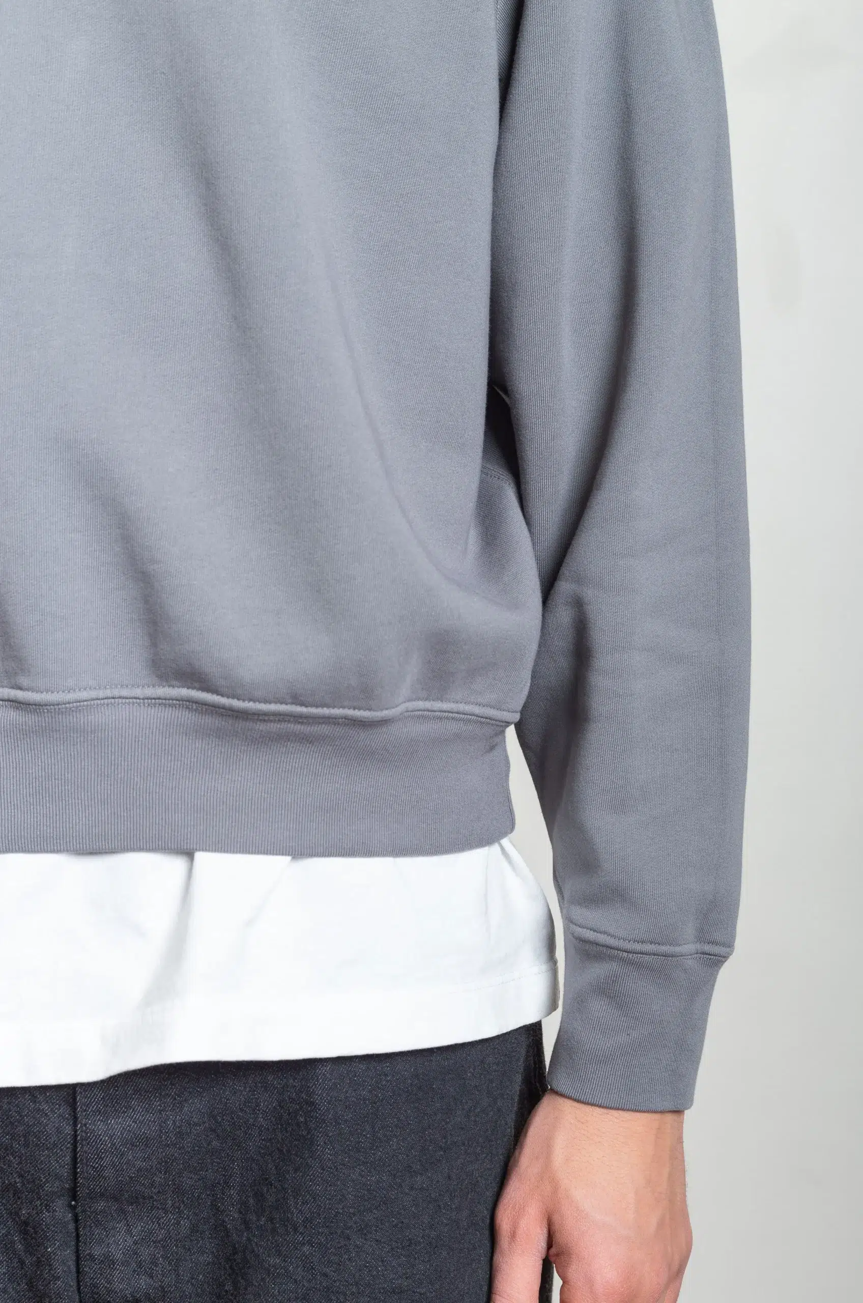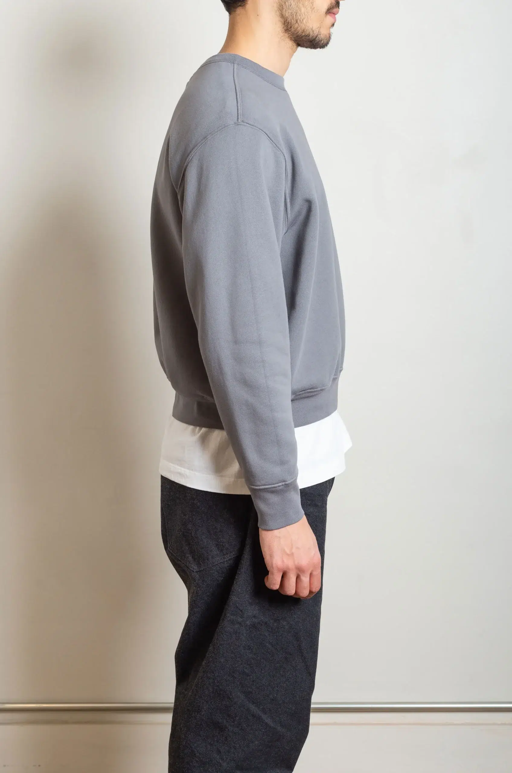 The relaxed silhouette feels deliberate and controlled, allowing the sweatshirt to move naturally while retaining a composed shape. In addition, the clean construction and minimal detailing enhance versatility, making the piece easy to wear across a range of daily contexts. You can wear it as a standalone layer or integrate it into layered outfits without compromising balance or proportion.