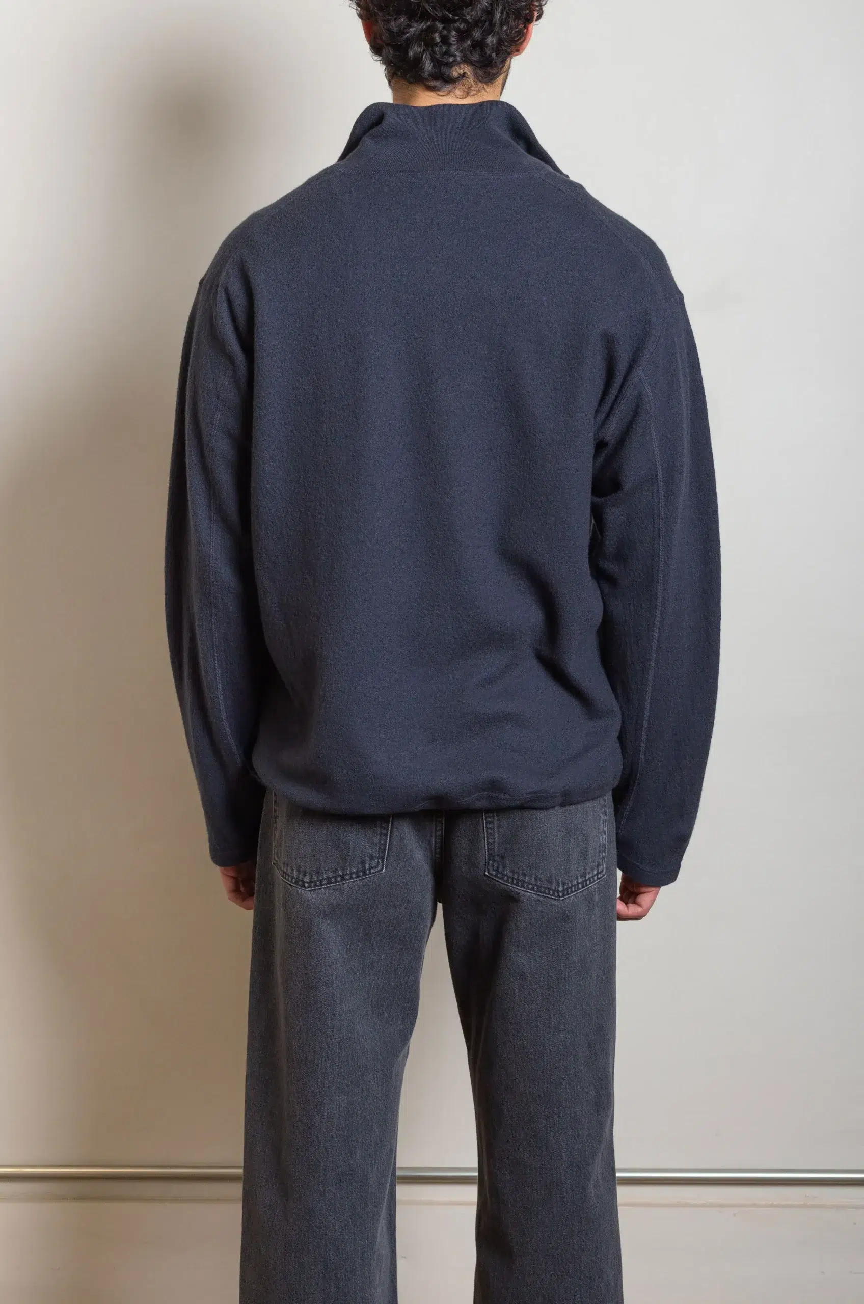 In addition, the milled wool construction ensures a smooth texture and subtle durability. As a result, the half-zip pullover maintains shape and drapes elegantly across the body. Furthermore, the zip closure allows easy layering and adjustable comfort for different temperatures. Consequently, it pairs seamlessly with trousers, denim, or layered outfits.