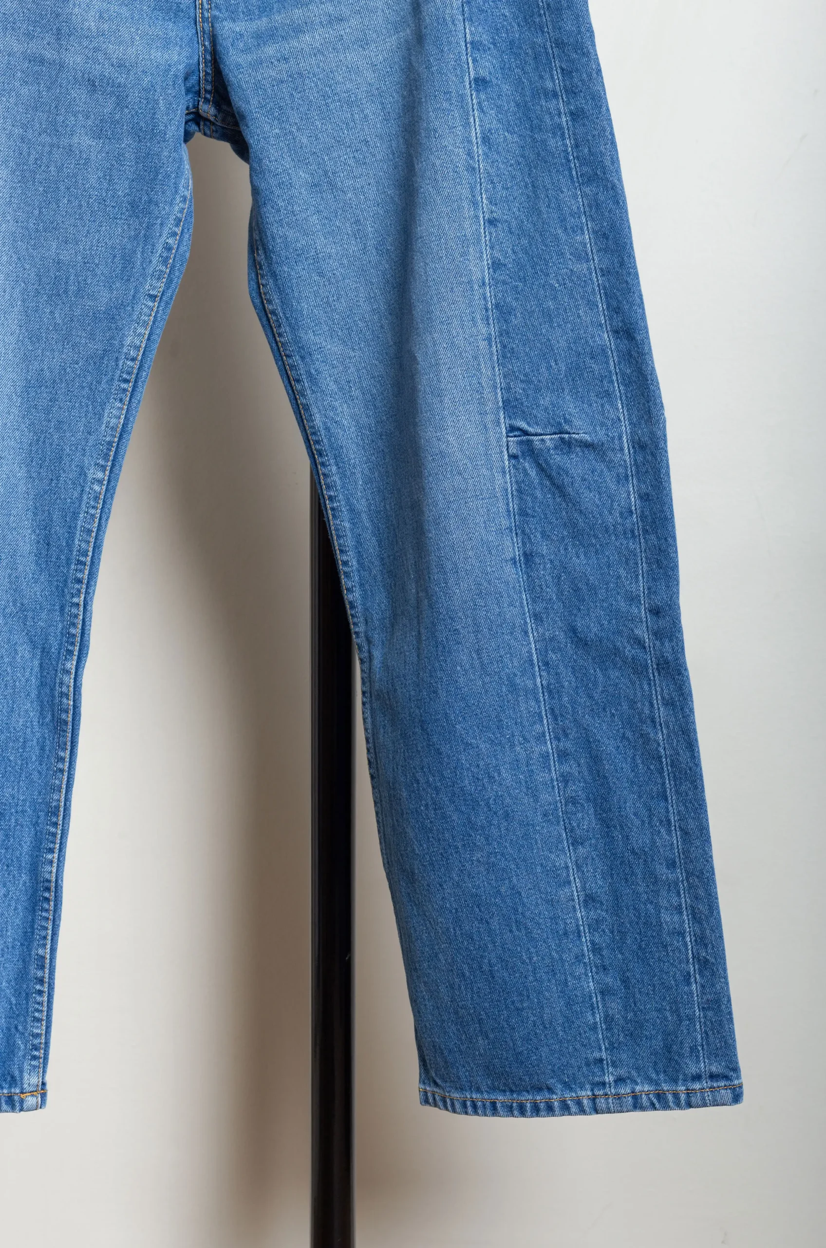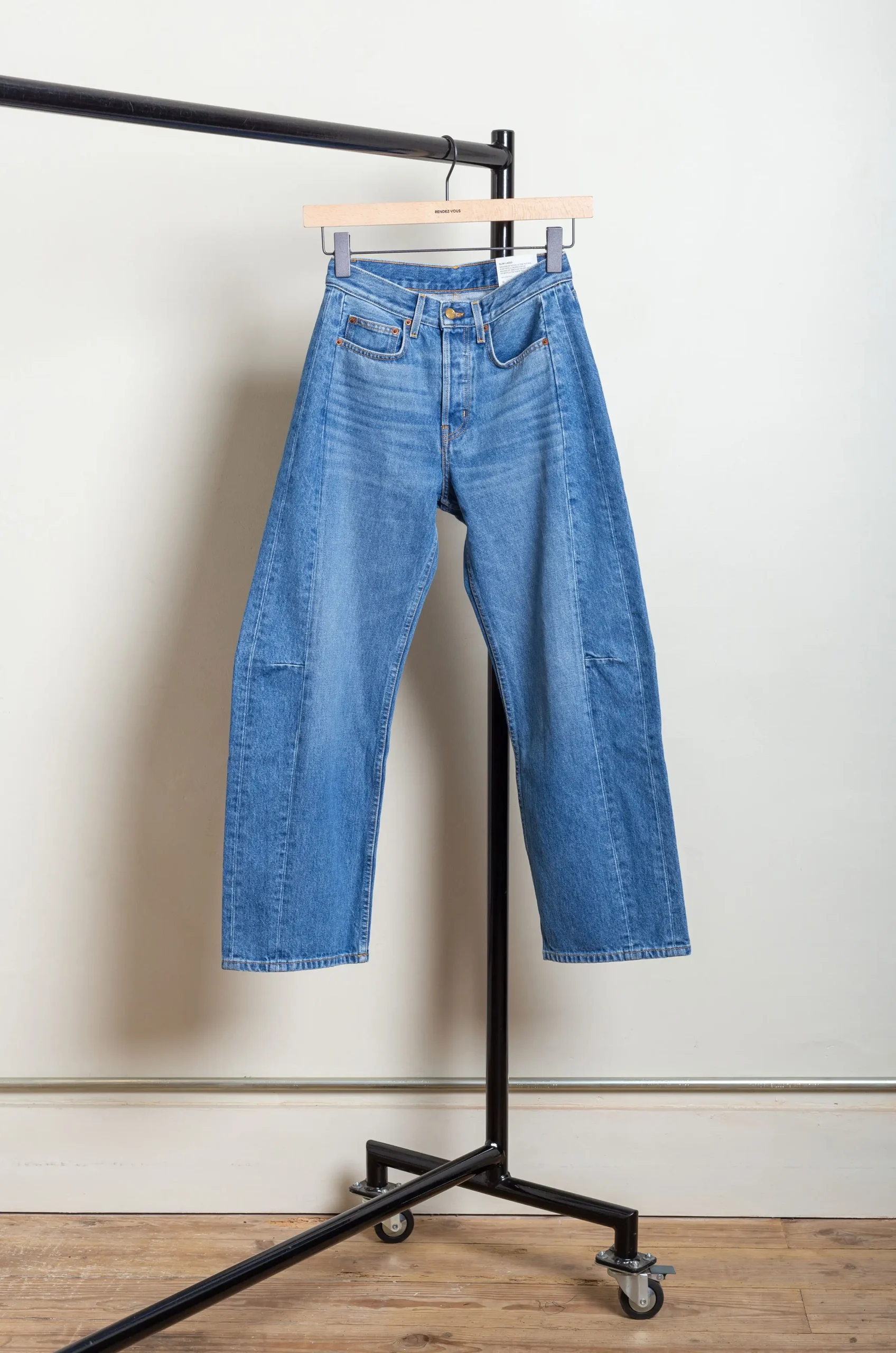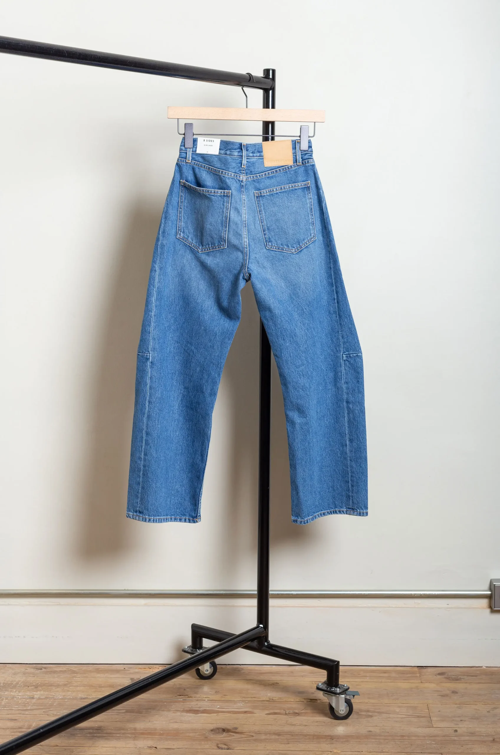 B-Sides was founded by two longtime friends and vintage jeans collectors, Claire Lampert and Stacy Daily, who quickly moved on from upcycling old models to making their own pants. They use denim originally designed for traditional workwear and renowned for its thickness and naturally flexible texture, which is woven by 19th-century family mills in Georgia and North Carolina, exemplifying the brand’s inherent retro aesthetic. Flattering, timeless fits are given a playful twist by upcycled washes, distressed effects and patchworks.