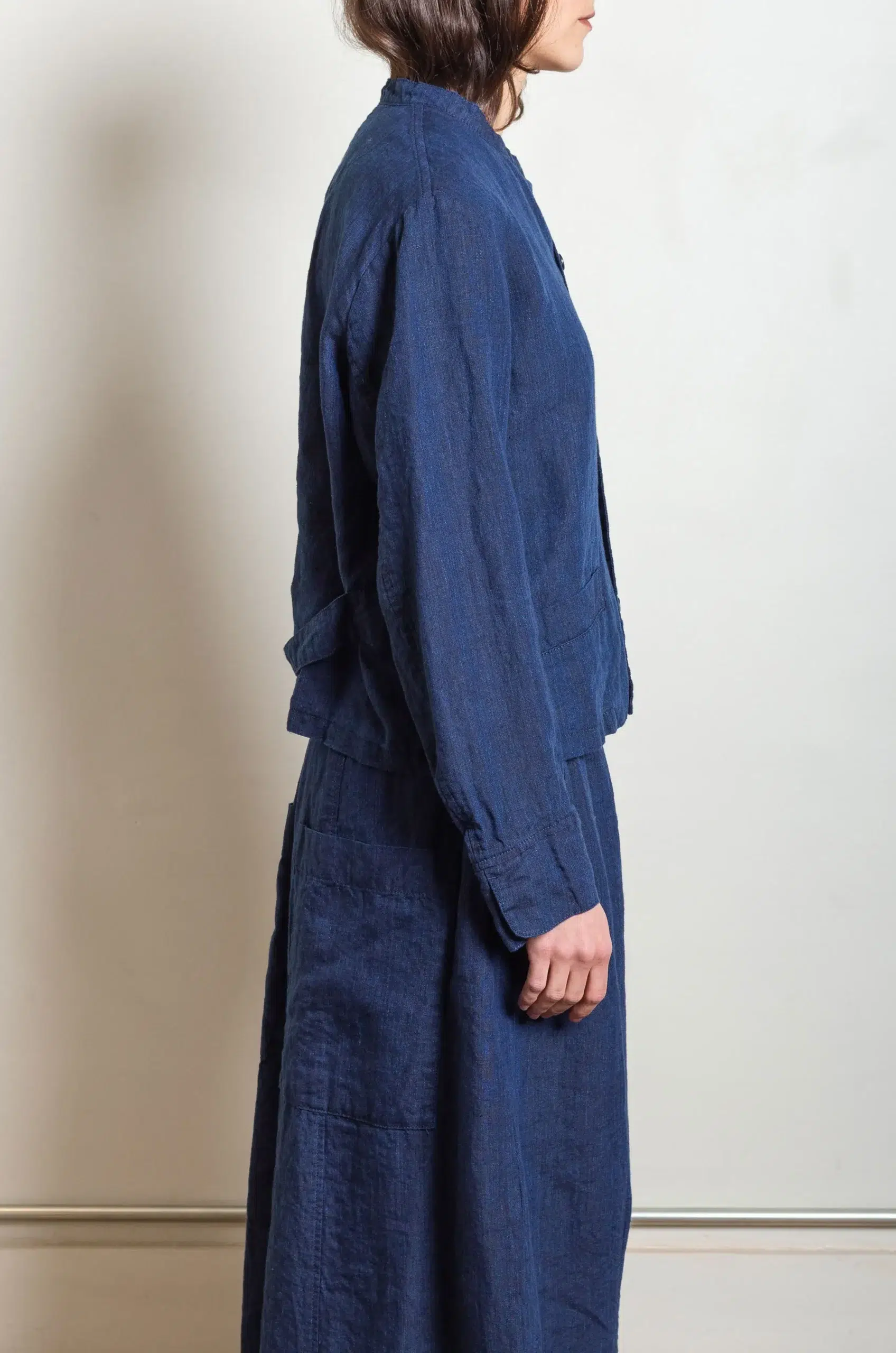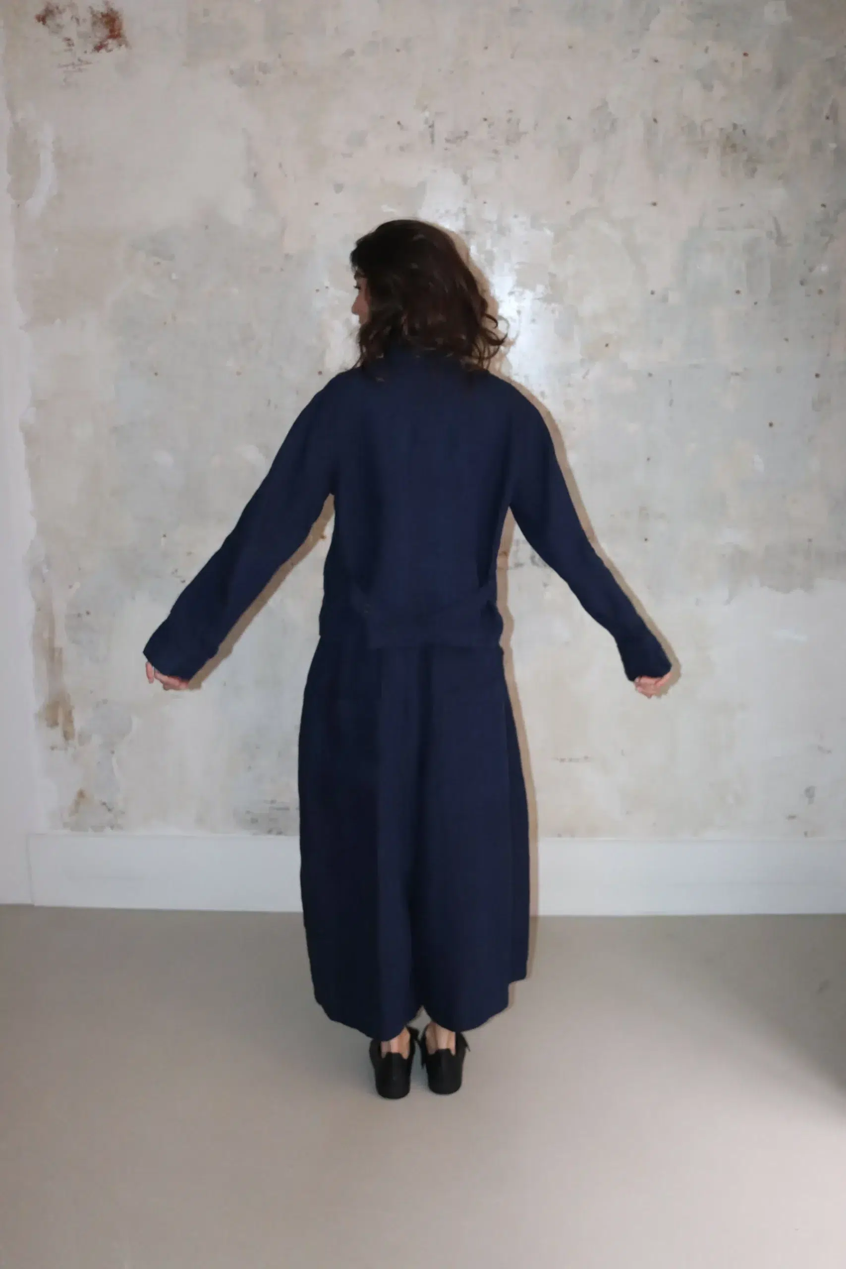 The jacket design feels relaxed yet intentional, creating a natural drape that adapts effortlessly to the body. In addition, the thoughtful construction makes it ideal for layering across seasons, whether worn over knitwear or lighter tops.